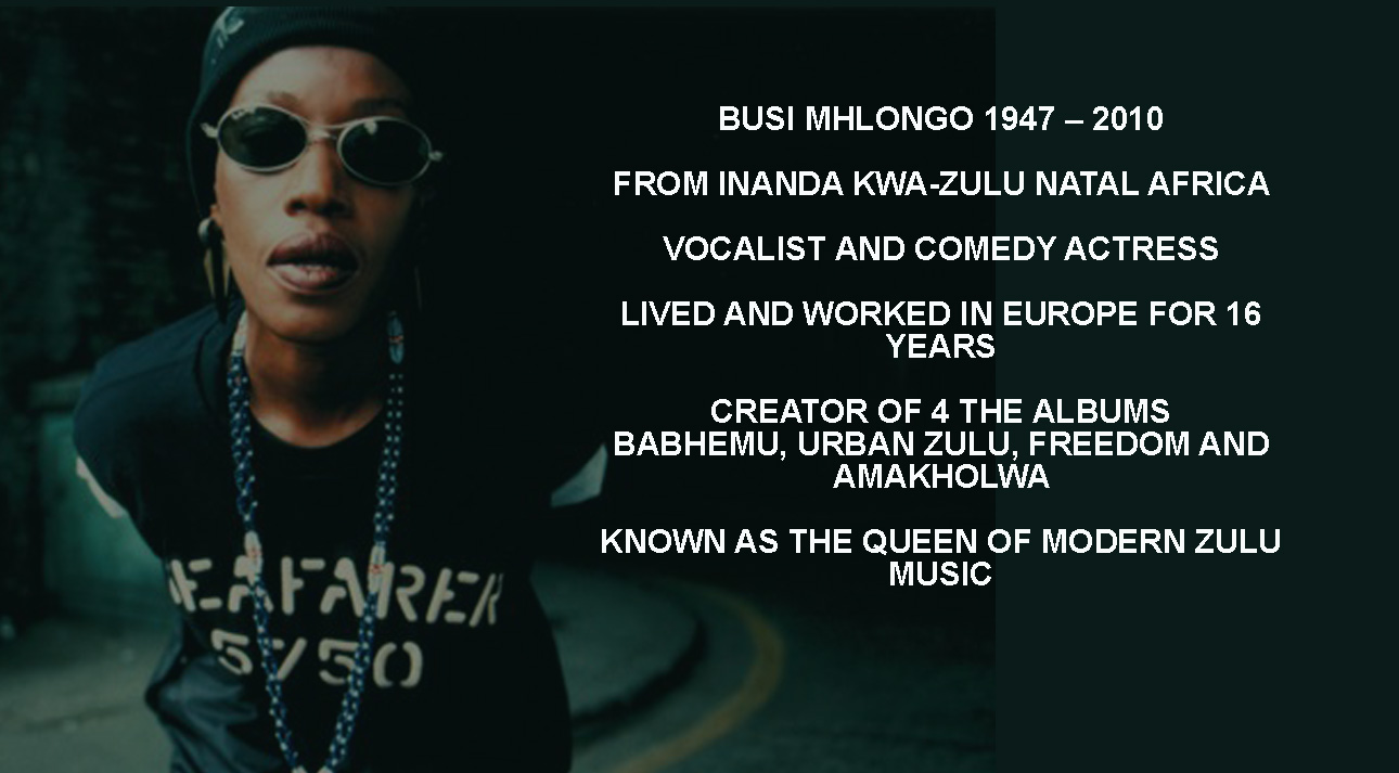 She continues a close working relationship with Europe and Holland in particular where she records and tours her debut album, Babhemu between 1993 and 1995. In 1996 she begins developing the Urban Zulu album at the Bat Centre with Themba Ncamu and Spector Mgwaza. Recordings take place at Downtown Studios in Johannesburg. From late ‘97 she lives in London to lay down the voice tracks with album producer Will Mowatt. In early ’99 her album launch tour is organised by Brad Holmes from the Bassline and Neil Comfort at the Bat Centre. By 2005 cancer returns. SABC create the Vuka Sizwe Benefit Concert. And in 2009 she records Amakholwa Believers. A final testament. June 15 2010 Busi dies at the Chief Albert Luthuli Hospital in Durban.