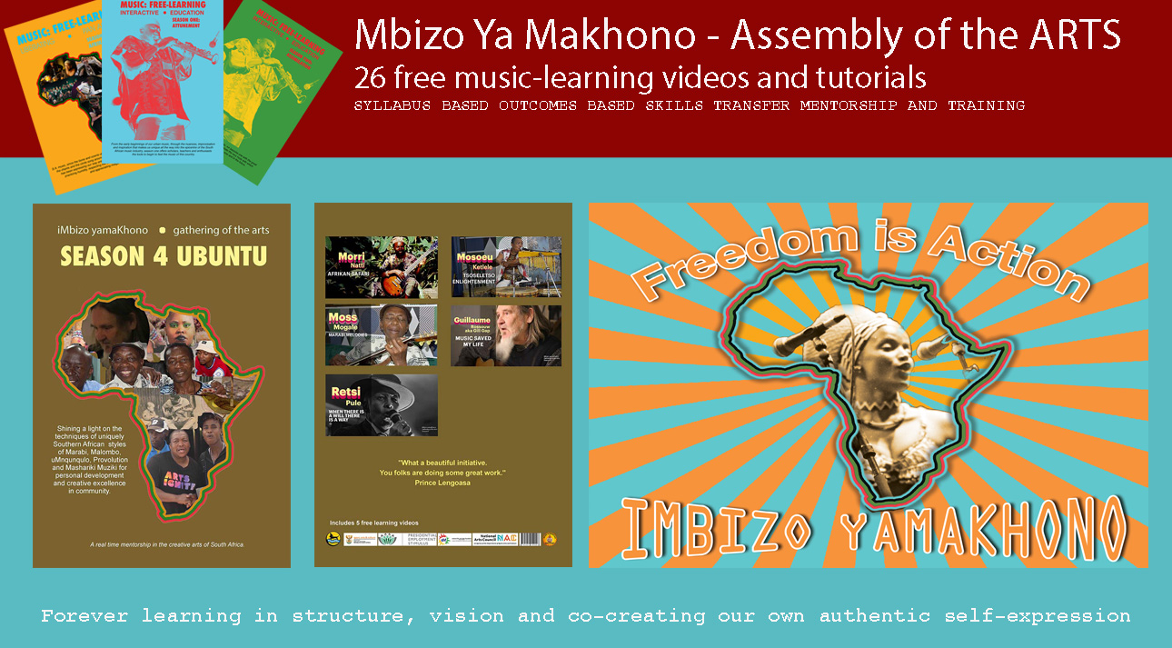 Filmed in a live studio setting, well-rehearsed creative collaborations combine with interviews and dialogues to reveal the deep wisdom and cultural heritage of Africa. Episodes are approximately 15 minutes in length and follow the 3-act structure profiling the protagonists calling, alignment and sharing of their creative art form. The real time documentation combines with interviews and heavily insightful heritage archives. These are released together with Pre and Post-task worksheets to facilitate the learning. In the never-ending story of the rich cultural practices of Southern Africa, iMbizo yamaKhono is a roadmap or virtual guide to learning South African Music and Heritage in a smarter way.